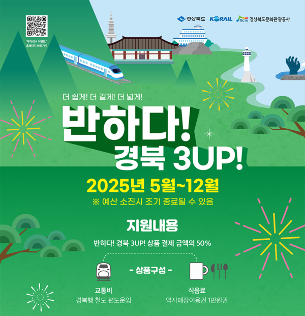 기차 타고 떠나는 경북 여행! 「반하다 경북! 3UP!」으로 50% 환급받고 떠나자 🚄💙