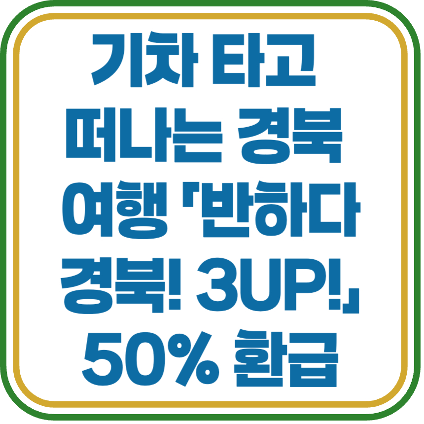 코레일 기차여행 상품을 구매하고, 경북 관광지 방문을 인증하면 50% 환급받을 수 있습니다.
