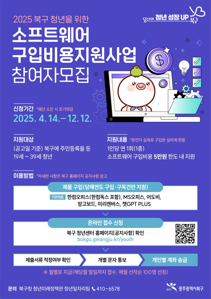 광주 북구 청년이라면, 놓치지 말고 소프트웨어 지원사업에 꼭 신청하세요!